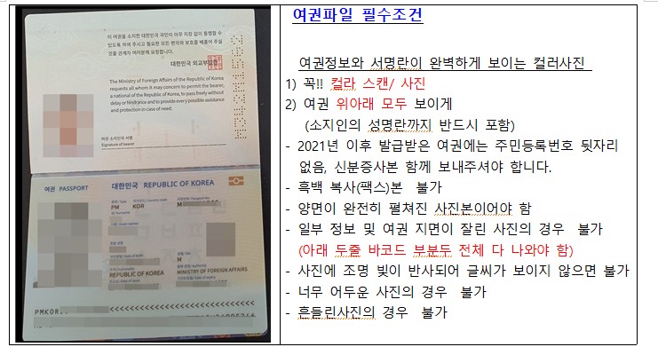 여권사본 보내실때 신분증사본도 함께 보내주십시오