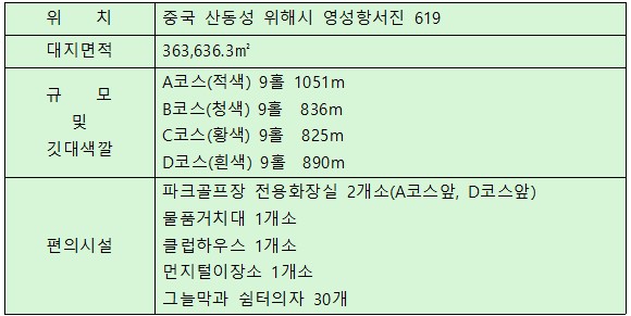 ▷탑파크골프장주요특징 1. 중국에 한국형 파크골프장 (표준코스 + 롱비거리홀로 구성된 코스)
