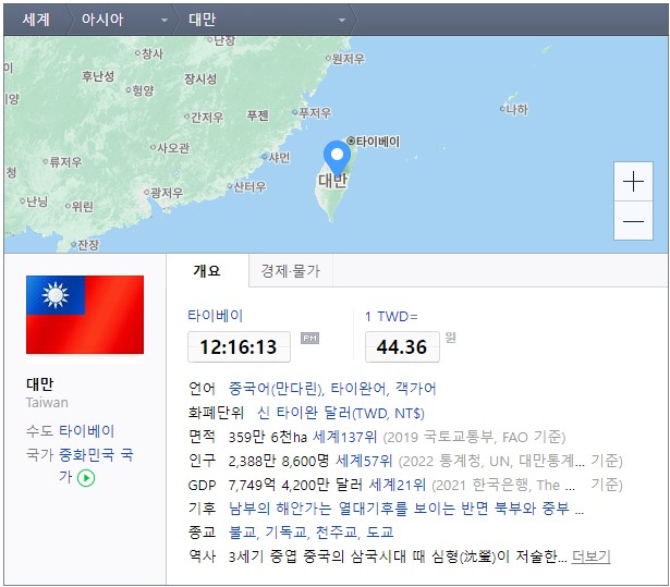 국가의 공식적인 명칭은 '중화민국'이다. 타이완 섬에 정부를 둔 미승인 국가이다.