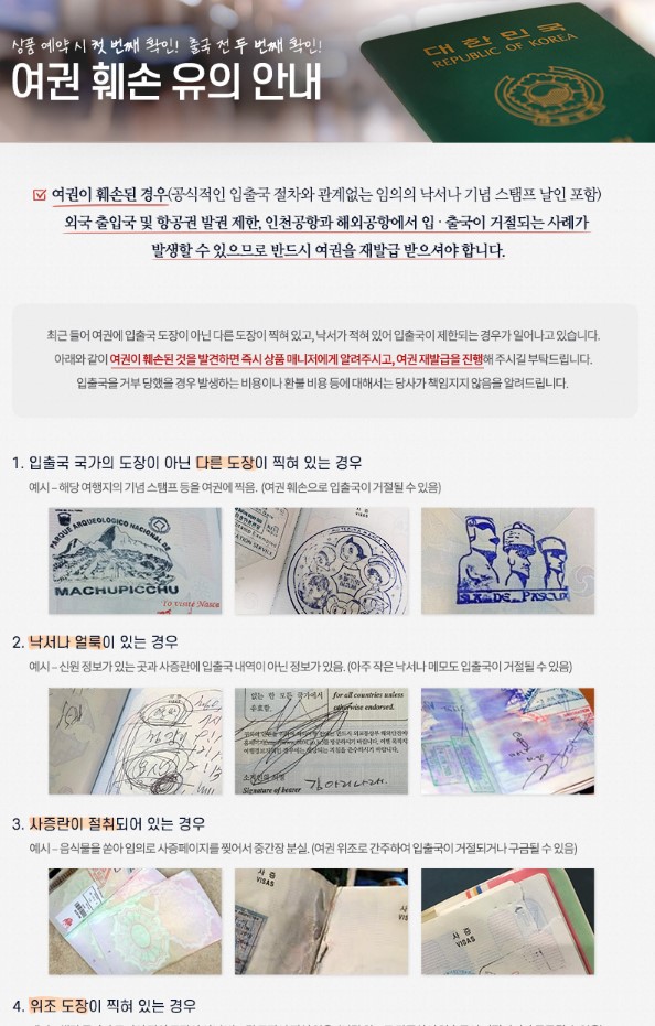 - 낙서, 파손, 훼손된 여권은 사용 할 수 없으니 해당 경우에는 꼭! 재발급 받아주세요.