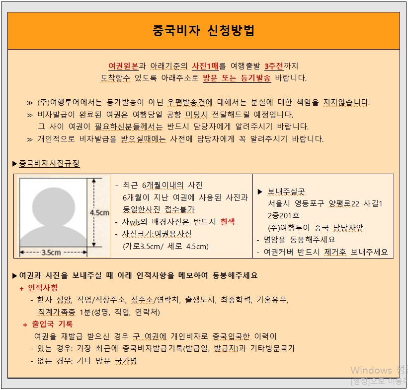 - 관용여권소지자, 외국인시민권자인 분들은 비용 및 구비서류가 상이하오니 담당자에게