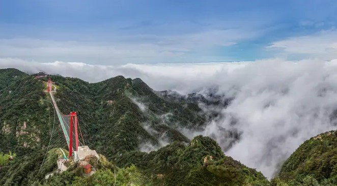 현수교는 길이가 505.5m에 달하고, 143m 높이에 설치되어 있는데 중국에서는 제일길고,